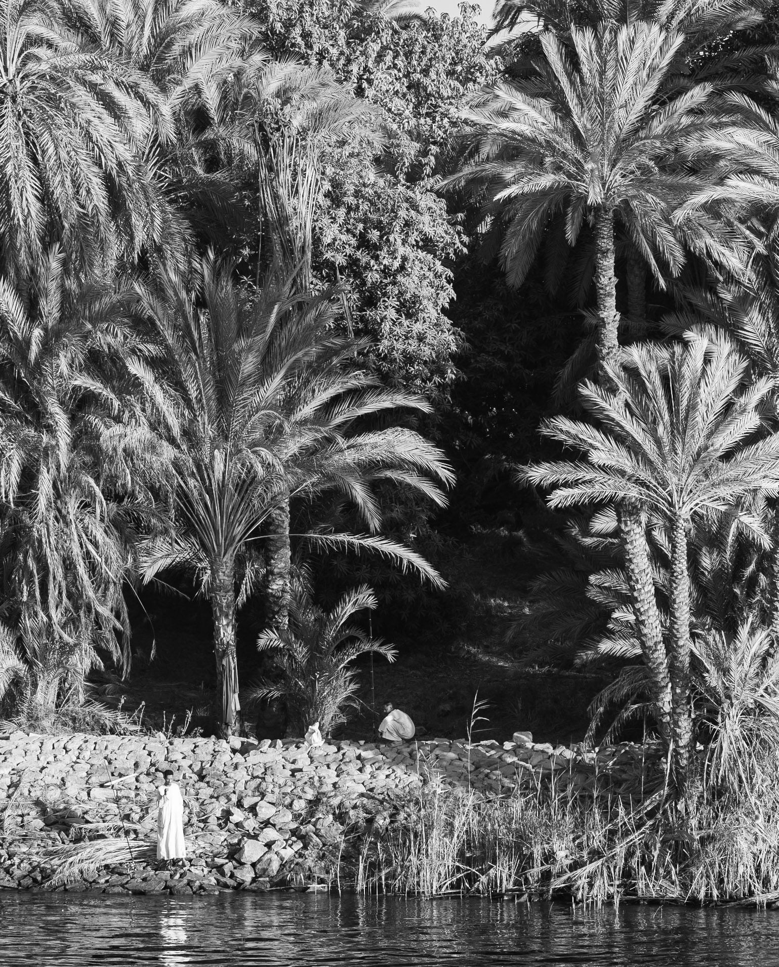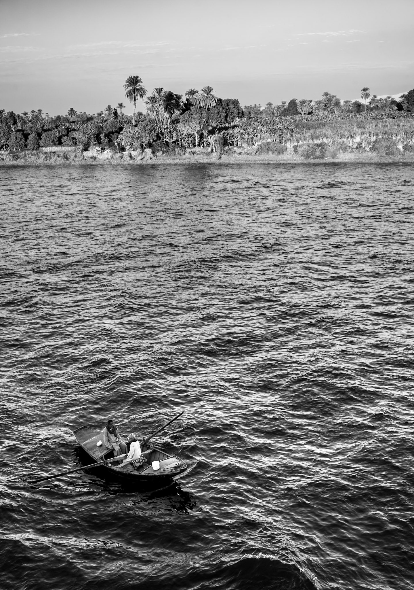 Una vez terminé de hacer las fotos, y antes de ponerme a editarlas, me di cuenta de que la galería de Egipto sería en blanco y negro. Evitar la distracción de los cielos azules, las arenas amarillas, las piedras naranjas y las palmeras verdes. Y focalizarme en las luces y las sombras, los templos y el desierto, la geometría y la gente. Y, por encima de todo, el Nilo, el auténtico protagonista de esta película.